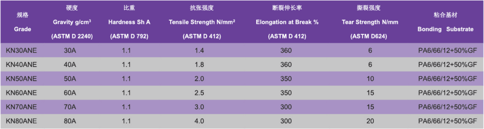 ●與工程塑膠的包膠性 良好 Excellent bonding ability to engineering plastic